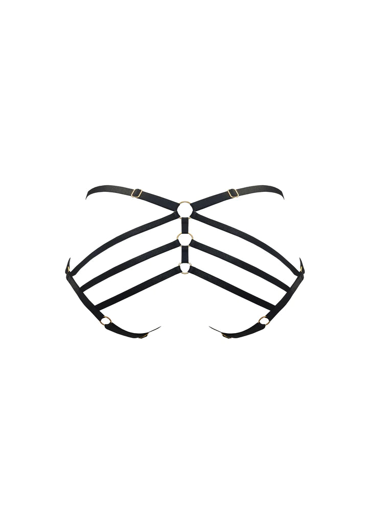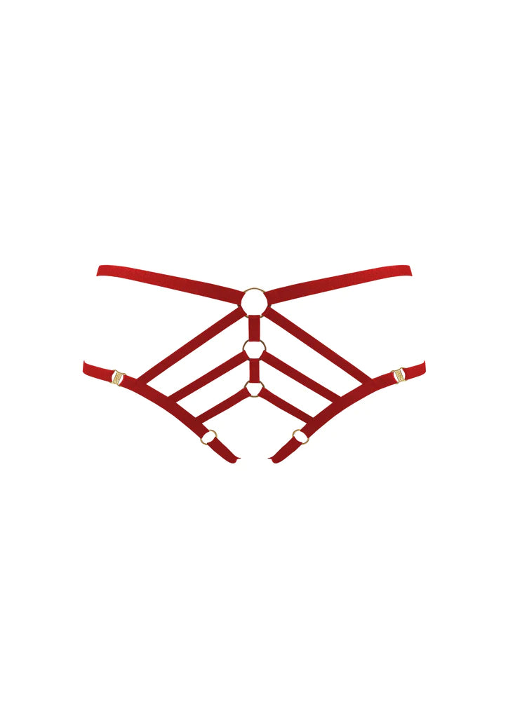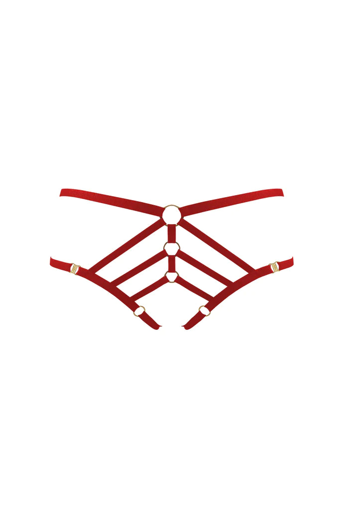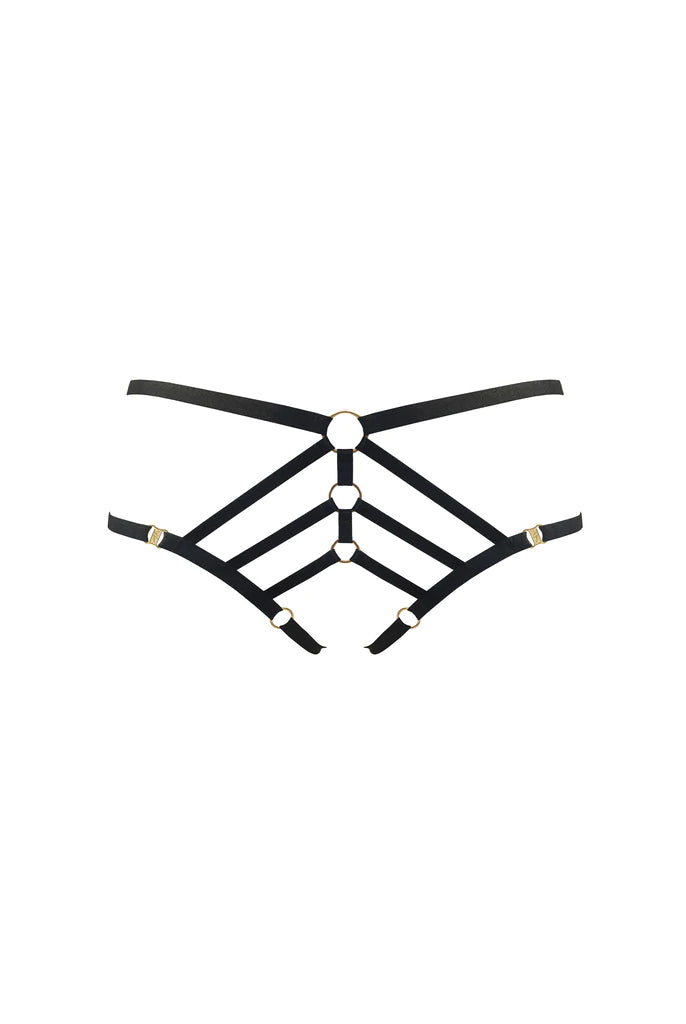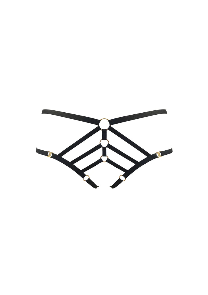 An ouvert brief made up entirely of Signature satin elastic strapping and 24k gold plated hardware. Fully adjustable, this piece makes the ideal gift. Wear alone or layer over your favourite Bordelle pieces.
