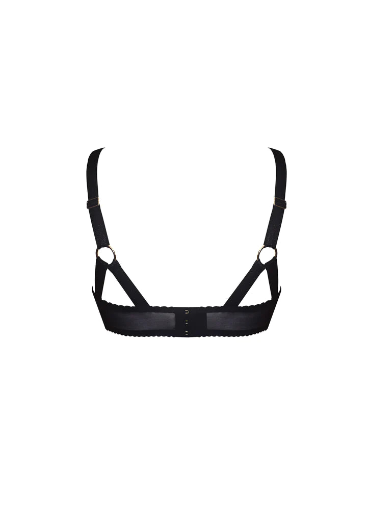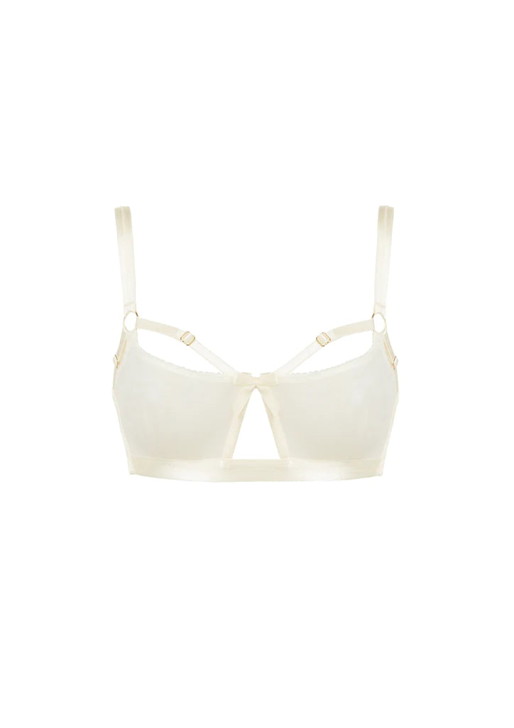 The ideal everyday Bordelle piece, crafted from soft stretch mesh with adjustable satin elastic strapping and a peep detail at the centre front.