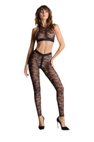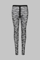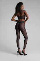 These leggings feature mostly recycled openwork lace. A wide waistband edged with a flat elasticated trim emphasises the curves for an '80s style.