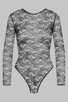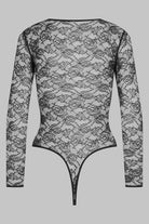This thong bodysuit is embellished with mostly recycled openwork lace. With its flat elasticated trim, the high-leg design emphasises the hips for an '80s style. Adjustable hook-and-eye fastening at the crotch.