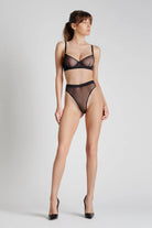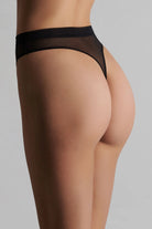 This black colour high-rise thong features soft mesh with a sheer iridescent appearance.