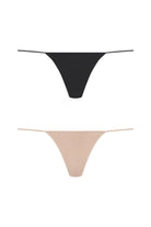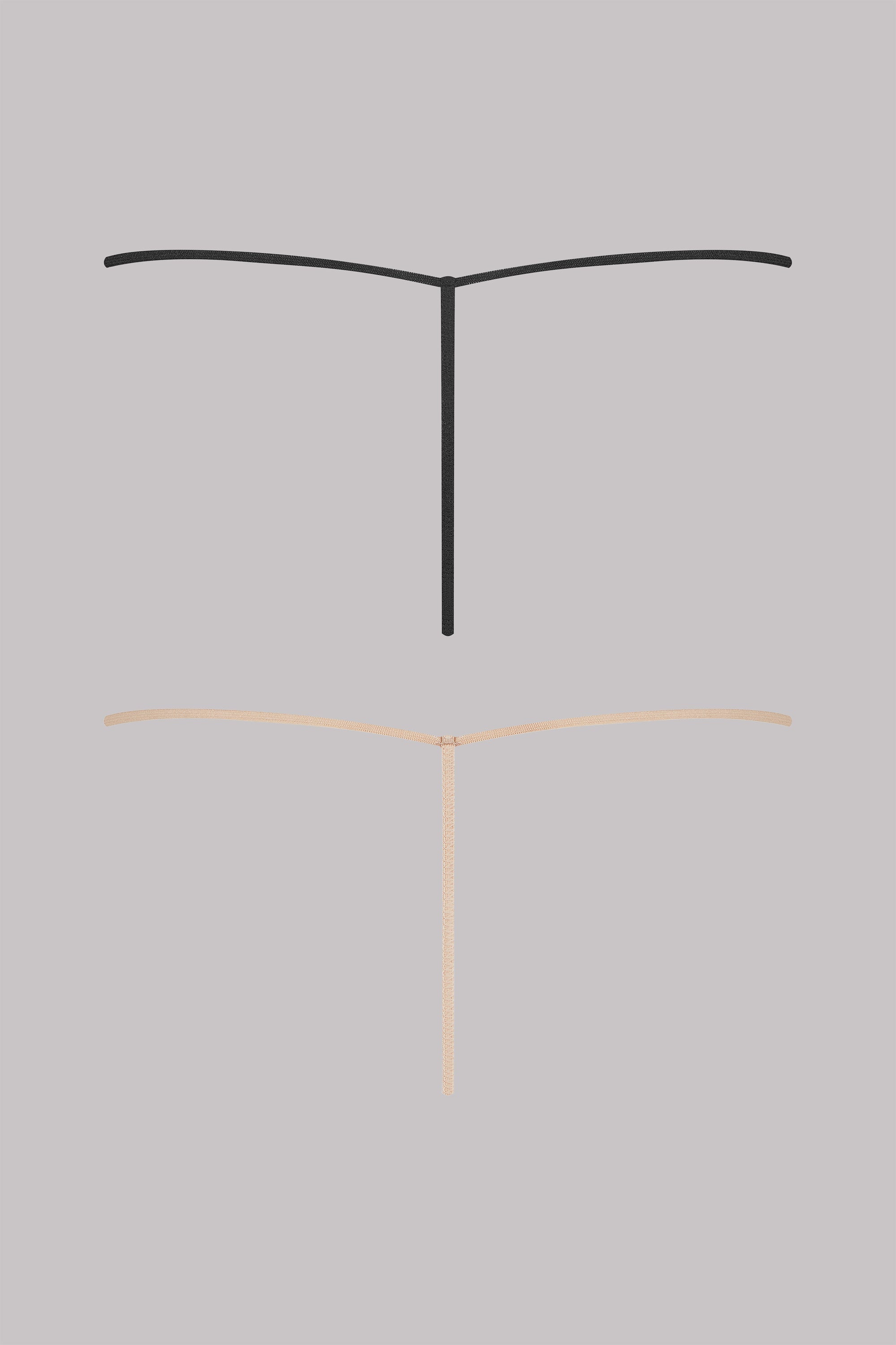 Pack of 2 black and flesh-colored mini thongs in opaque microfiber, second skin effect, made up of string borders