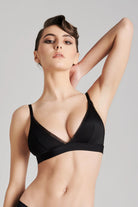 Triangle bra (non-wired) in opaque microfiber. Cups with mesh trim. Elasticated underband for better support. • Triangle style