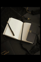 The notebook where you can write down your most private thoughts. 150 blank pages with an elastic golden suspender belt attachment. Write a few intimate notes using the black lacquered Maison Close ballpoint pen and mark your place with the satin ribbon bearing the evocative message: The Maison Close Muse tells of a fantasy world she alone knows...