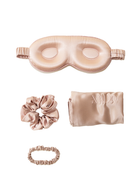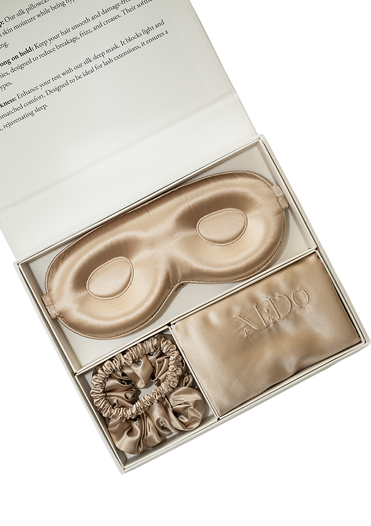 Silk's naturally hypoallergenic smooth texture reduces friction, helping to prevent wrinkles and hair breakage while promoting better sleep. The eye mask blocks light for deeper rest, while the pillowcase helps regulate temperature, keeping you cool (or warm) and comfortable all night. Plus, the gentle scrunchies protect your hair by reducing tension and minimizing creases.