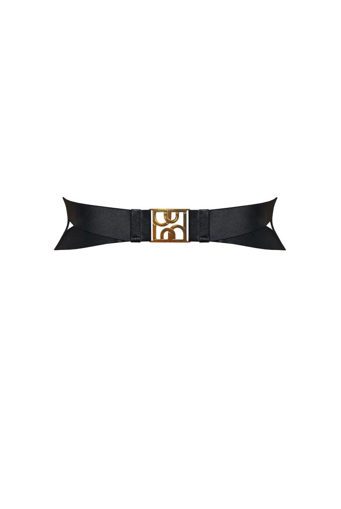 - Signature satin and wide band elastic strapping