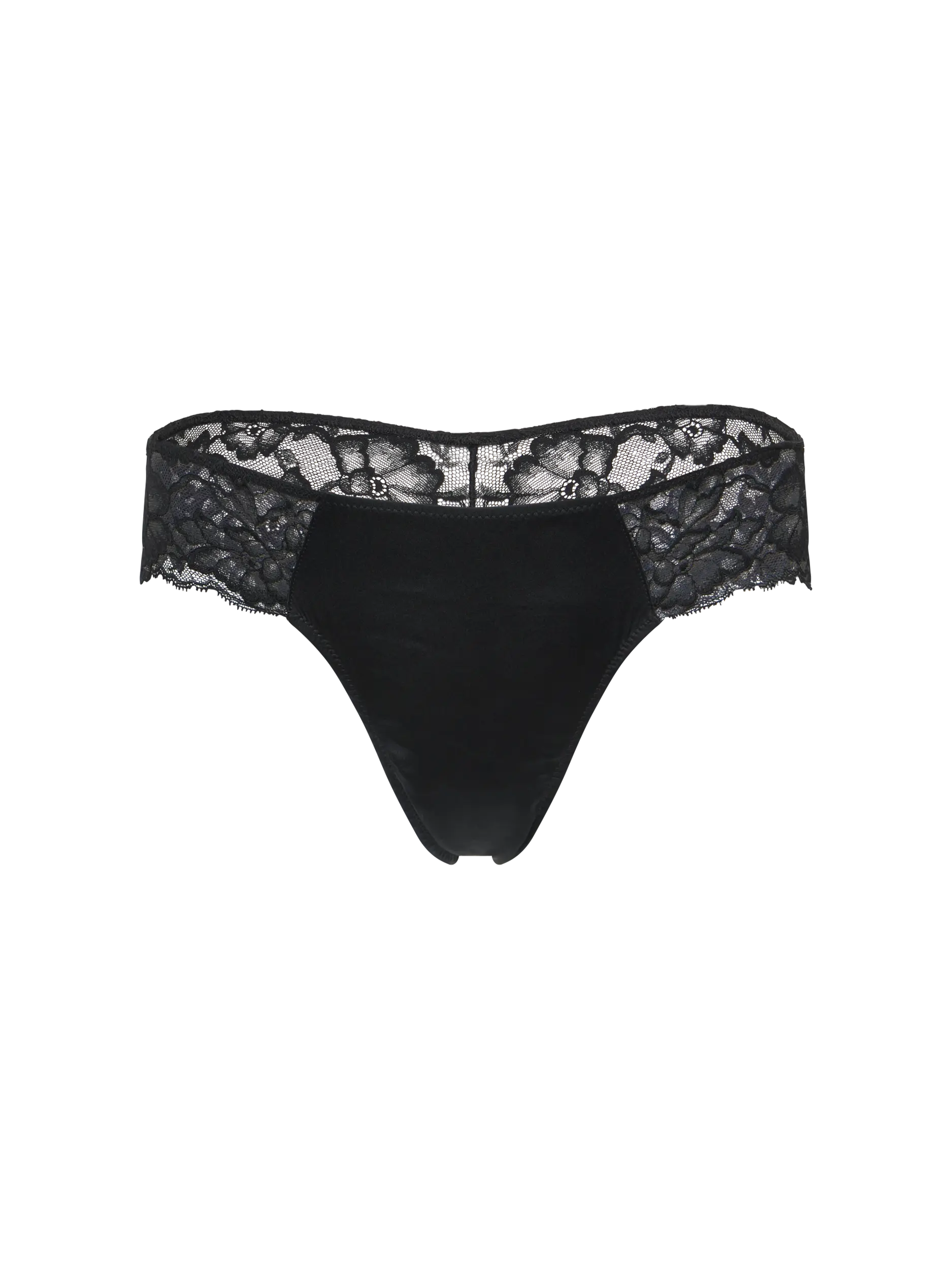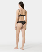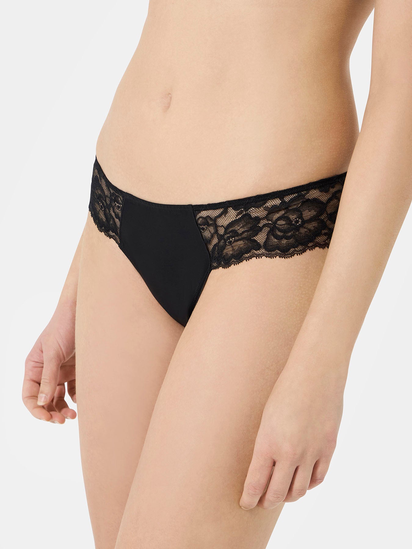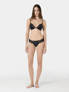 Brazilian brief in lace and silk satin, designed to combine sensuality and comfort in a refined design. The delicate lace outlines the silhouette with elegance, while the silk satin adds softness and a luminous touch. A sartorial creation Made in Italy that enhances femininity with contemporary style.